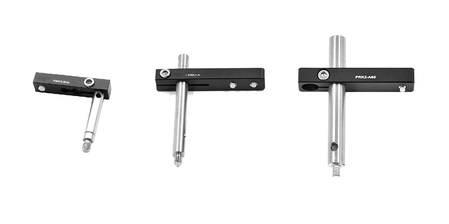 The clamping arm secures the optical element onto platform-mounted optical adjustment holders or V-groove clamps using a nylon-tipped set screw with a 2 mm hex. The flexible mechanism of the clamping arm is locked onto the mounting rod using a 2.5 mm ball driver or hex key. The mounting rod also features a through-hole for applying additional torque during tightening.